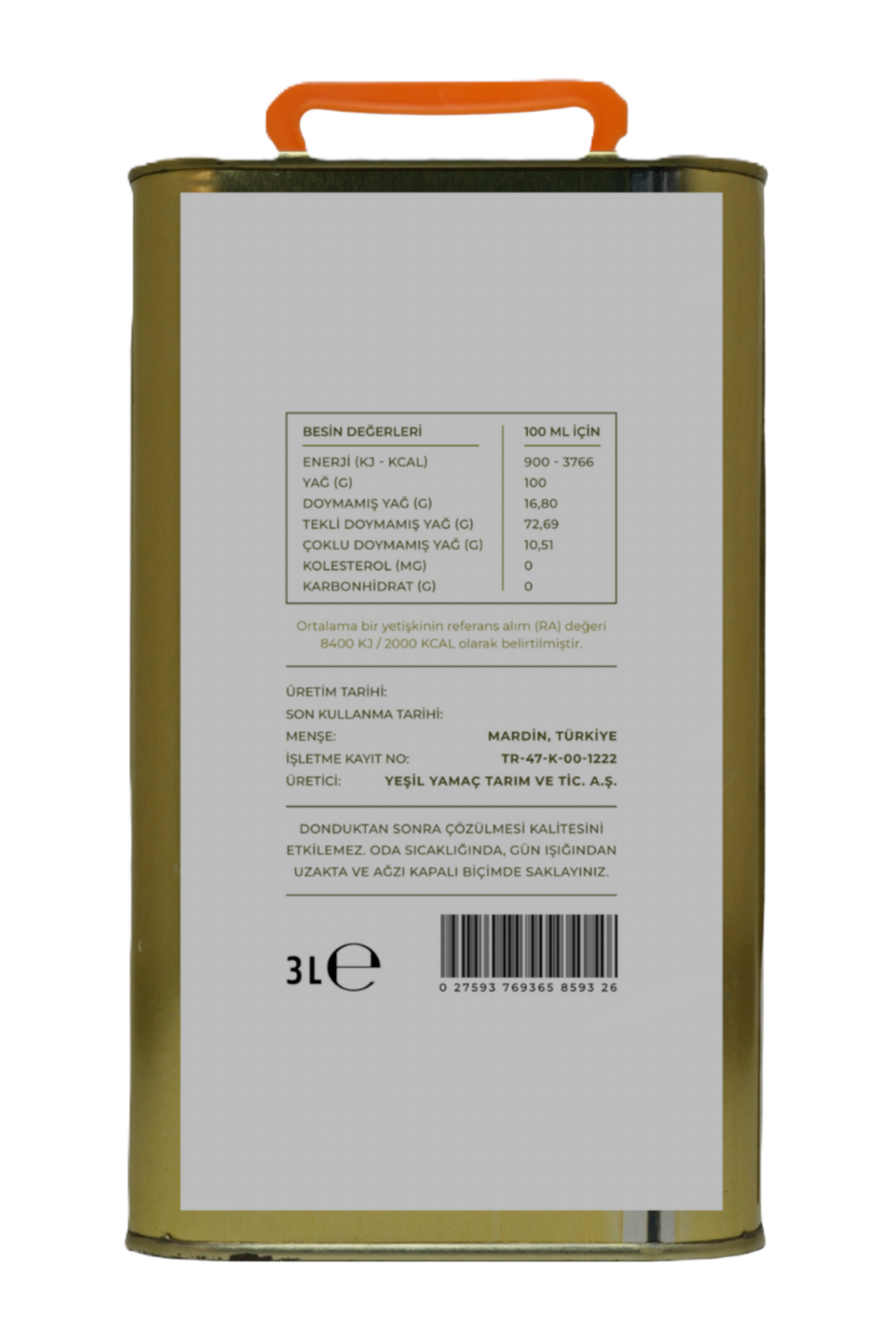 | Tekli Doymamış Yağ | : 72.69g |