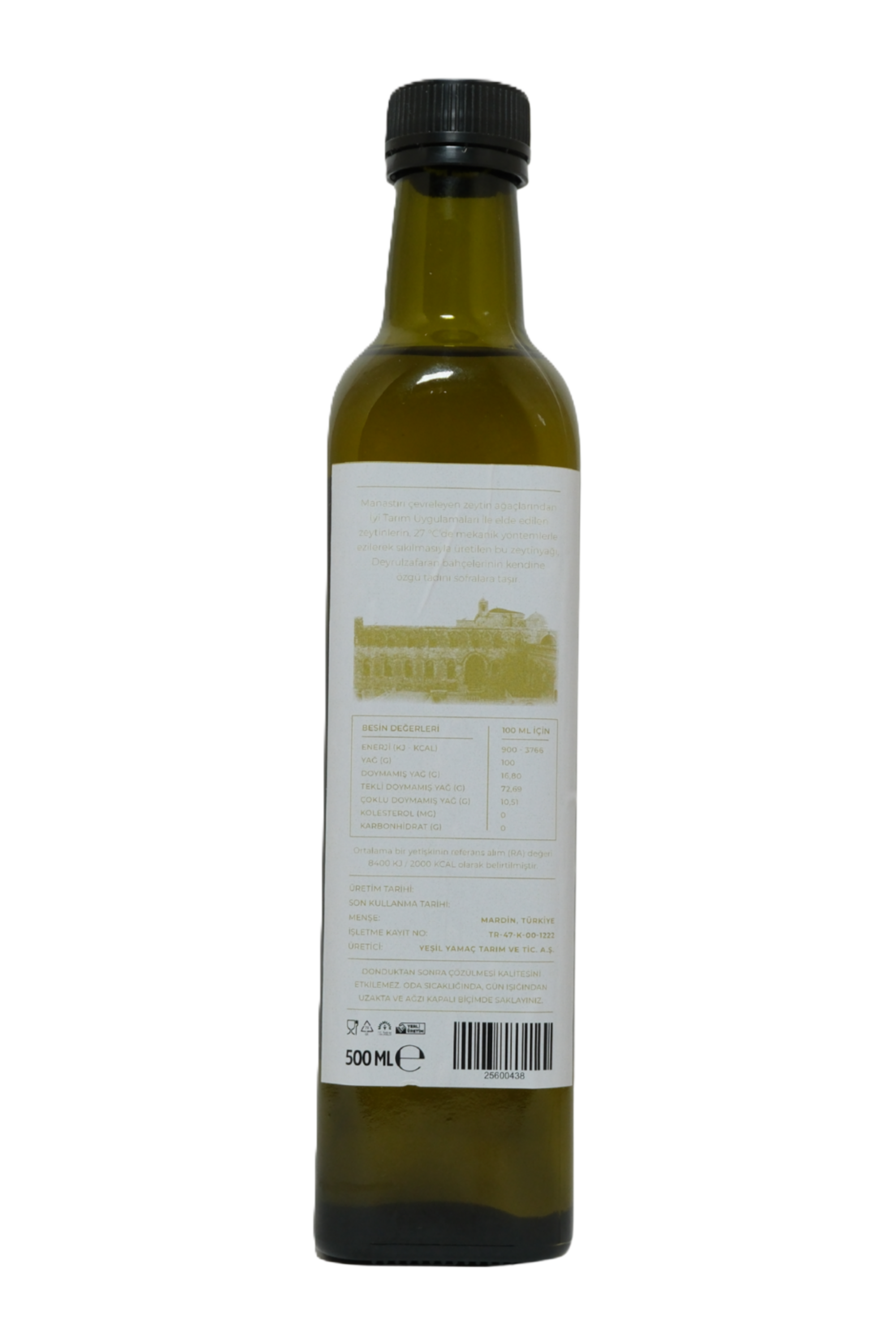 Manastırı çevreleyen zeytin ağaçlarından İyi Tarım Uygulamaları ile elde edilen zeytinlerin, 27 °C'de mekanik yöntemlerle ezilerek sıkılmasıyla üretilen bu zeytinyağı, Deyrulzafaran bahçelerinin kendine özgü tadını sofralara taşır.